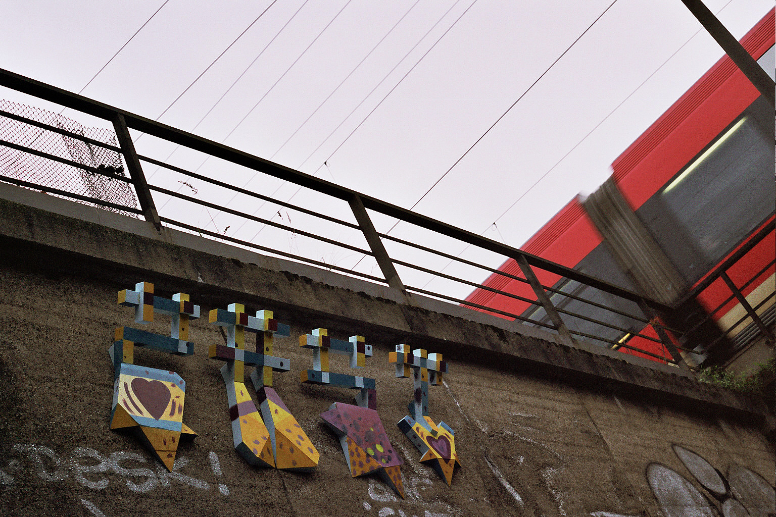 bewegliche Buchstaben bewegten sich im Fahrtwind der U-Bahn